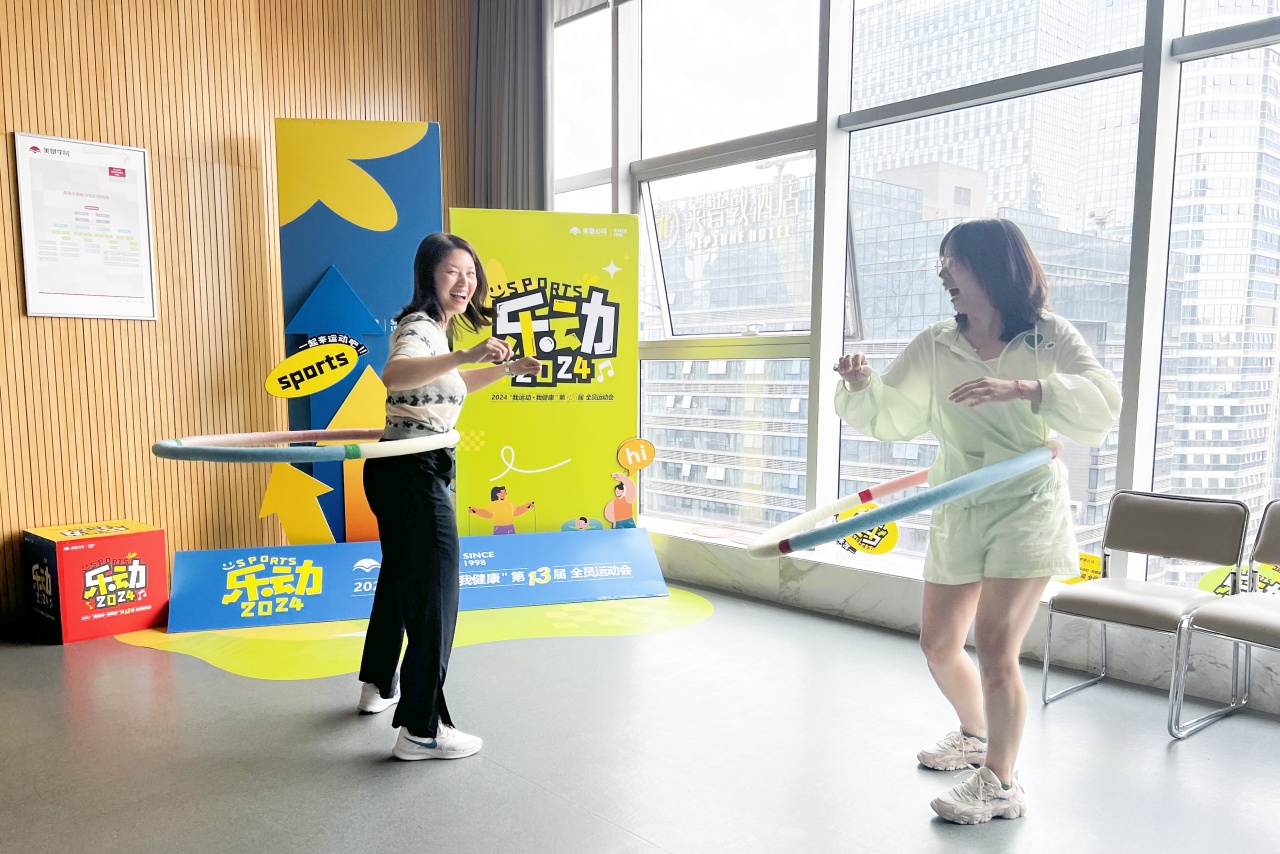 活动期间,美景福年总部、温江、双流以及部分门店还搭建了趣味共享运动角,把转呼啦圈、踢毽子、跳绳等轻运动方式引进办公区,这成为大家劳逸结合的绝佳方式。