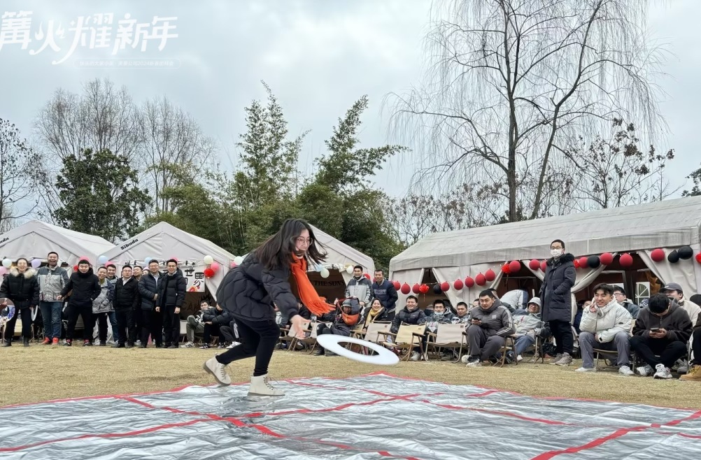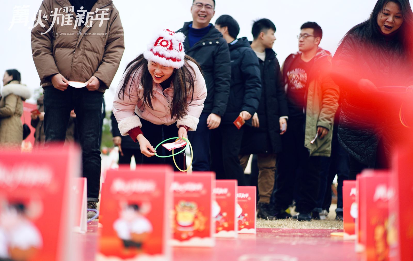 年味随着活动当天的趣味游园逐渐释放,K 歌争霸,美景好声音唱出新春年味;幸运投壶,欢乐一掷收获龙年好运;踢毽子、套圈圈,童年在此刻限定返场;人气最旺的游戏——财源滚滚来,轻轻一抛,福寿年年增;三二一看这边!规则简单却刺激无比……